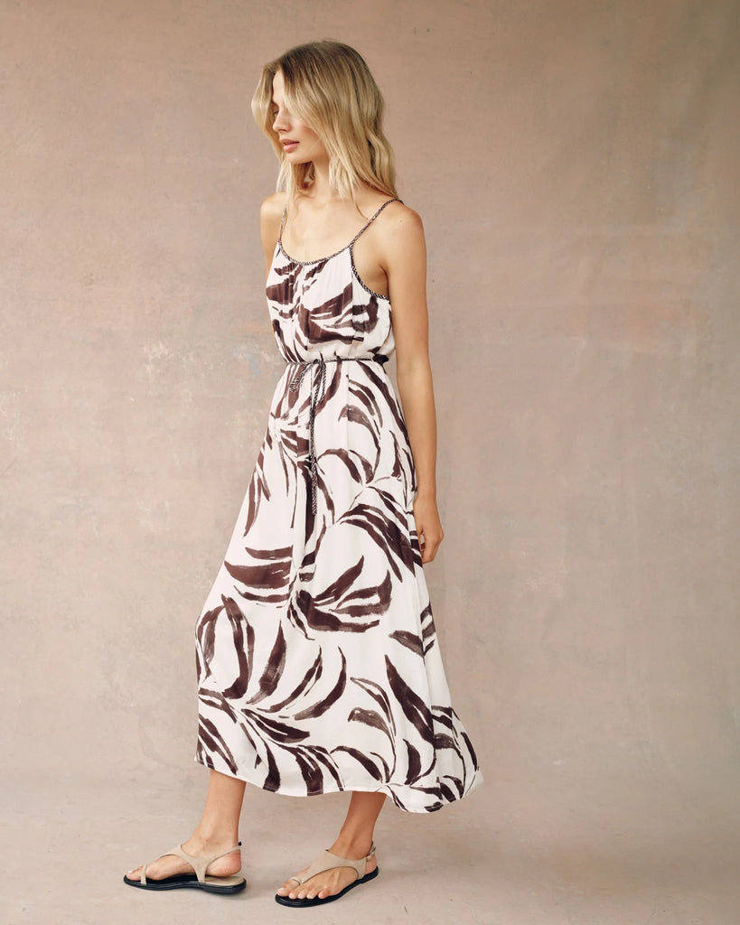 Style this maxi with your favorite statement necklace and sandals for the perfect look.Introducing the Shirred Cami Maxi Dress by Bella Dahl, a perfect choice for beach days with its Moroccan Palm print floral pattern. This dress features adjustable spaghetti straps, a flowy A-line silhouette, and a belted waist for a customized fit. Made from a luxuriously soft blend of 71% rayon and 29% silk with a pull-on closure, it offers all-day comfort. Care instructions include hand wash and lay flat to dry, ensuring longevity and effortless maintenance.
