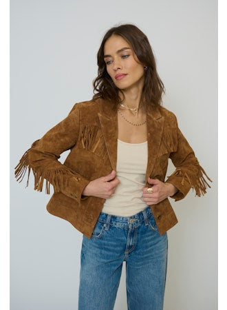CENTRAL PARK WEST Atlas Suede Fringe Blazer - XS / Camel is backordered and will ship as soon as it is back in stock.