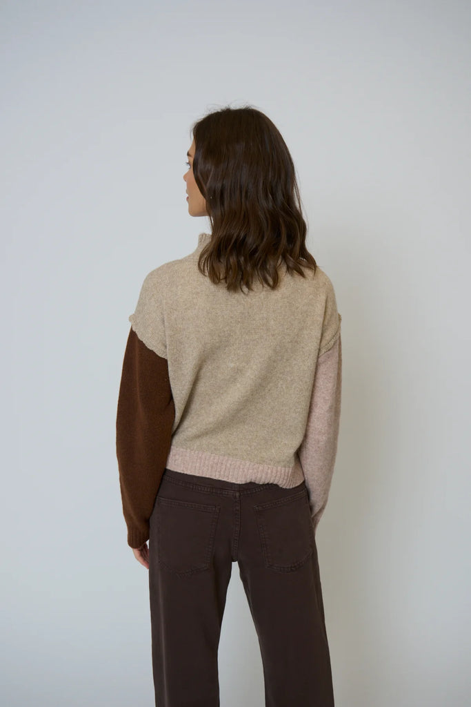 • Mixed-knit sleeves add contrast and dimension