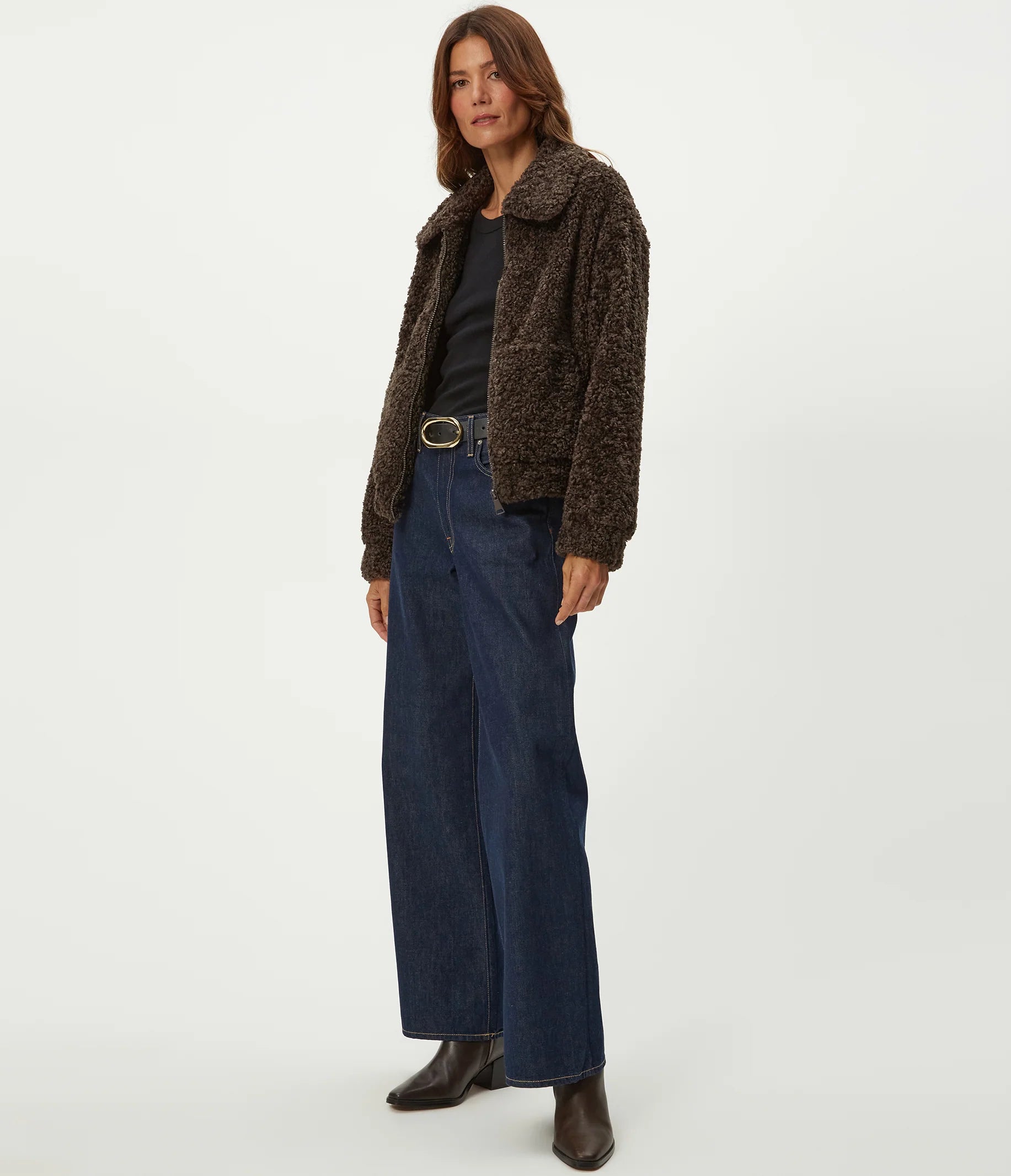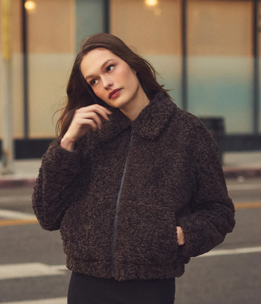 A classic re-imagined. This cozy jacket from Michael Stars is made with sumptuous faux shearling featuring a tonal enamel zipper closure and a Peter Pan collar. The fit is roomy, designed to sit at the hip. Wear yours with denim or a body-skimming maxi.