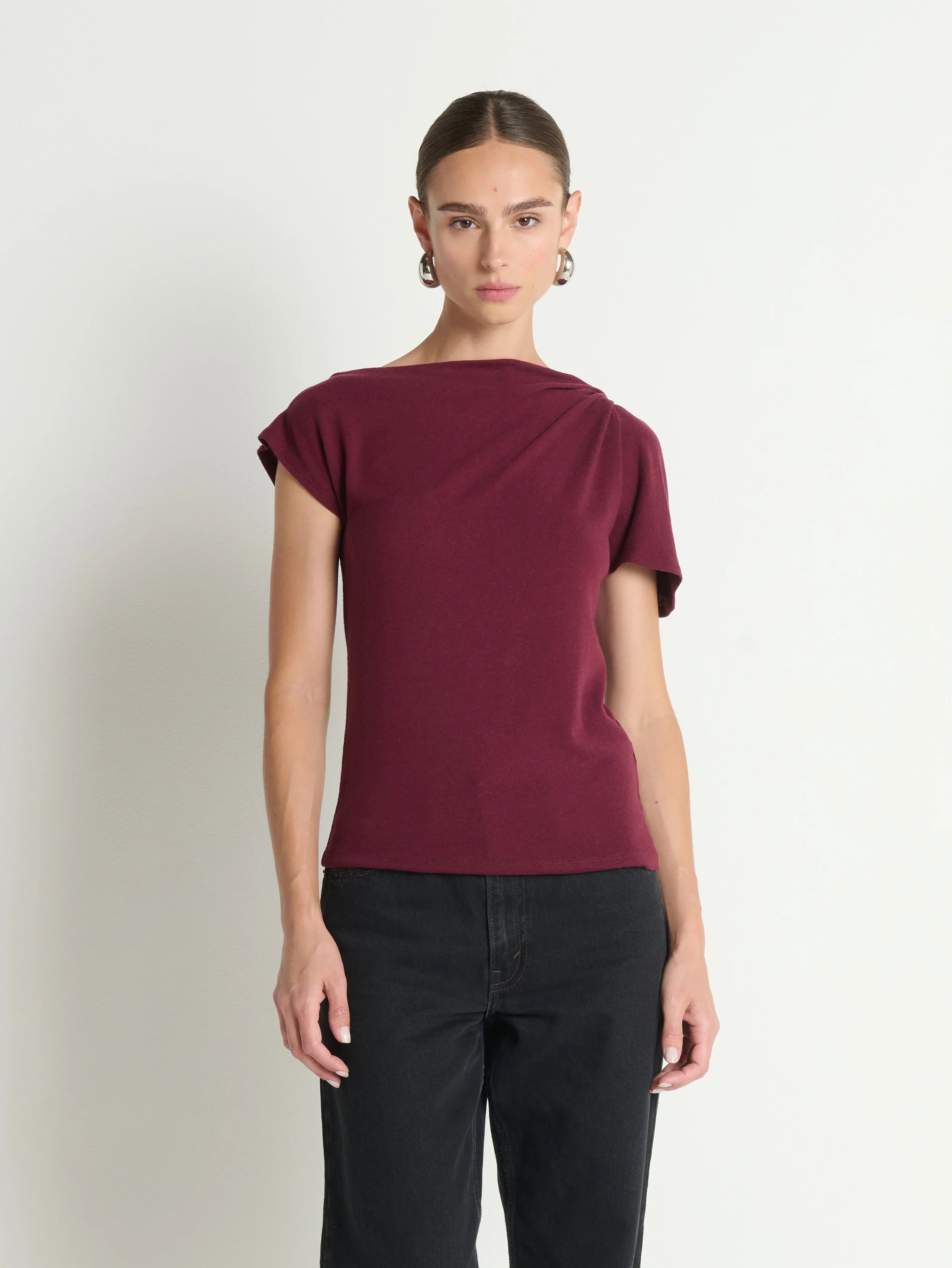 Sleek comfort that shows just the right amount of shoulder. The Rosie Knot Top is a modern classic with subtle stretch—made in our signature fit for easy wear. An asymmetric twisted shoulder detail brings confident, understated style.