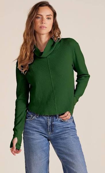 Meet the perfect transitional top from Bobi. This rib style features center seam detail, thumbholes, and a loose turtleneck. Hitting at the perfect length, this ultra-flattering top will be a staple this fall and beyond.