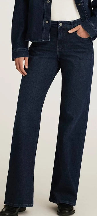 A relaxed wide leg with an easy mid rise, Sabrina is effortlessly flattering from hip to hem. This pair comes in a dark indigo wash with tonal whiskering.