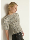 The Nation LTD Brinley Smocked Top in Multi Color Plaid is a playful yet polished addition to your wardrobe, blending comfort with statement style. This fitted top features a smocked bodice that hugs the torso and flares out at a ruffled, hip-grazing hem for a flattering silhouette.