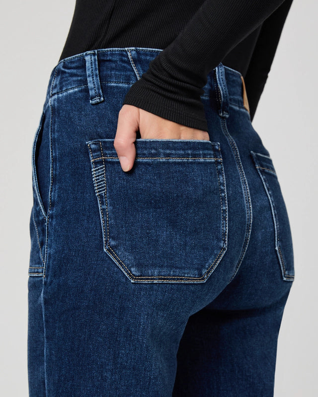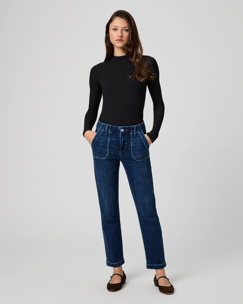 Mayslie is our mid-rise straight ankle pant designed with utility patch pockets. Cut from TRANSCEND VINTAGE denim in a soft, dark wash, this pair combines the signature comfort of Transcend with rich denim character for a lived-in look.