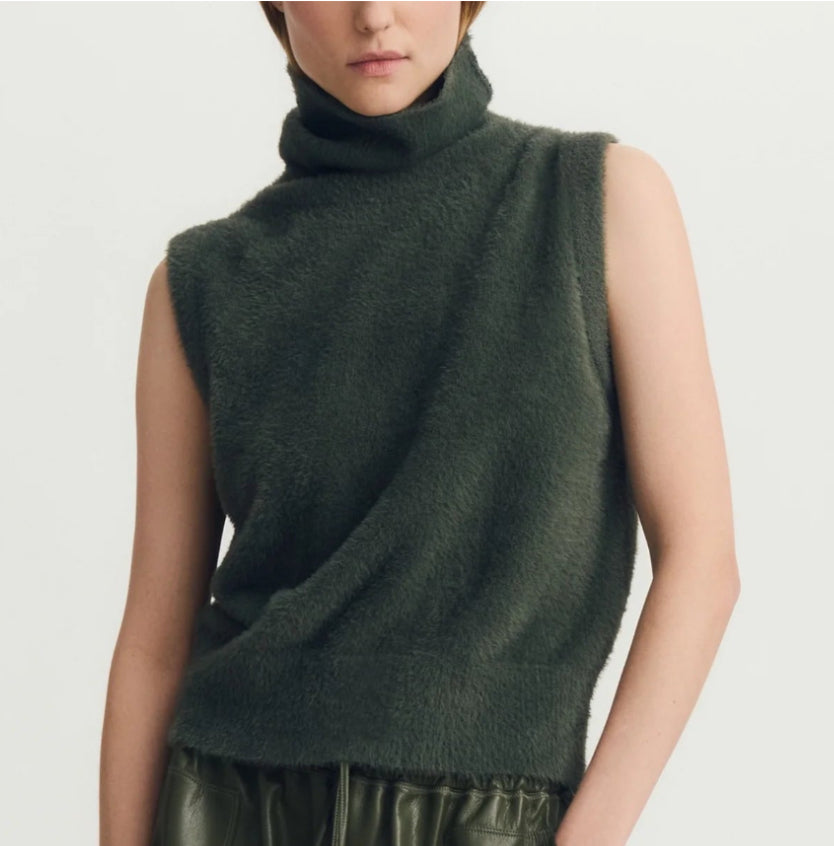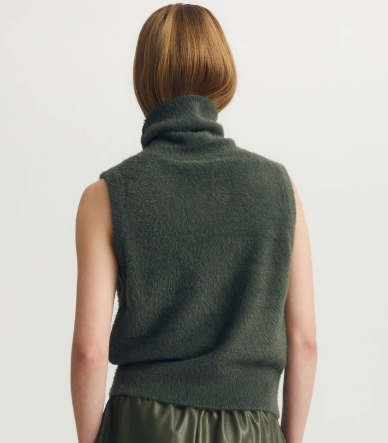 Cozy up in this fuzzy turtleneck sweater from Melissa Nepton in a versatile dark khaki green. It is your new go-to for any denim pairing. Wear it solo to show off that snuggly softness, or layer it over a long sleeve when the chill sets in. Effortlessly cute and ready for all your cool-weather adventures!