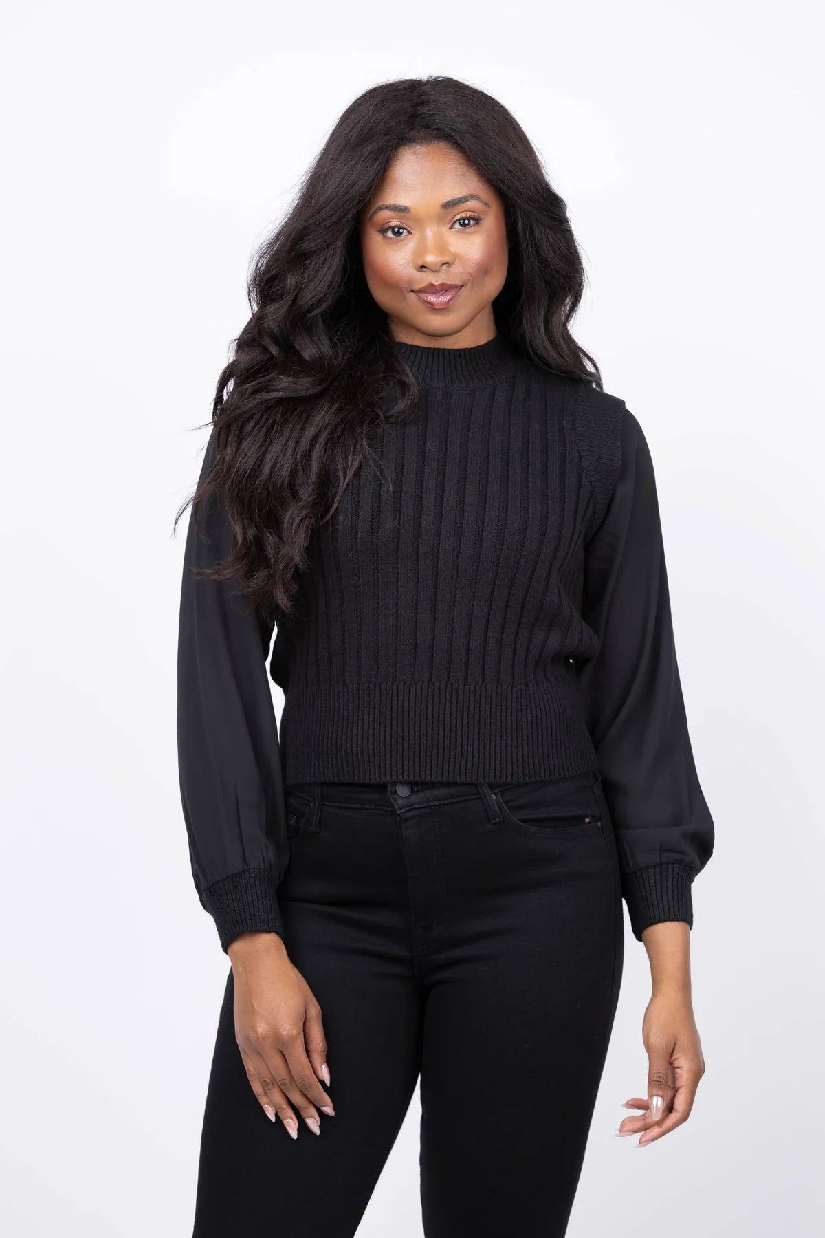 The Design History Mock Neck 2Fer combines the cozy comfort of a sweater with the polished look of a blouse. This versatile top effortlessly elevates your wardrobe, offering warmth and style in one sleek piece. Perfect for layering or wearing on its own, it transitions seamlessly from office to weekend with ease and sophistication.