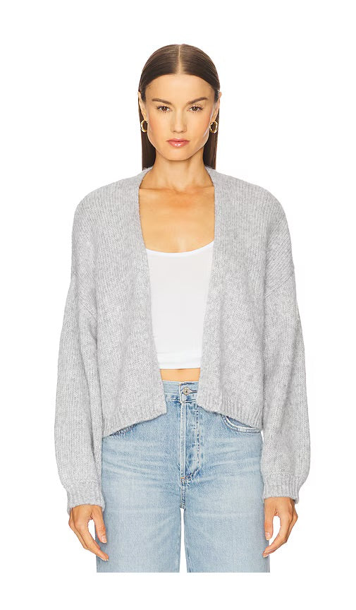 Stitches & Stripes Giada Cardigan in Light Grey. Fully fashion knit textile. Imported. Open front design. Ribbed trim. Midweight fully fashion knit fabric.